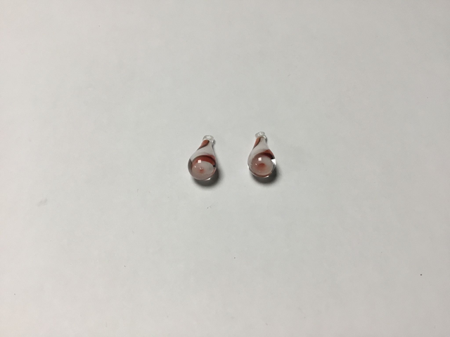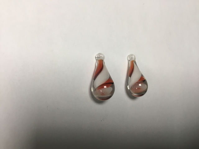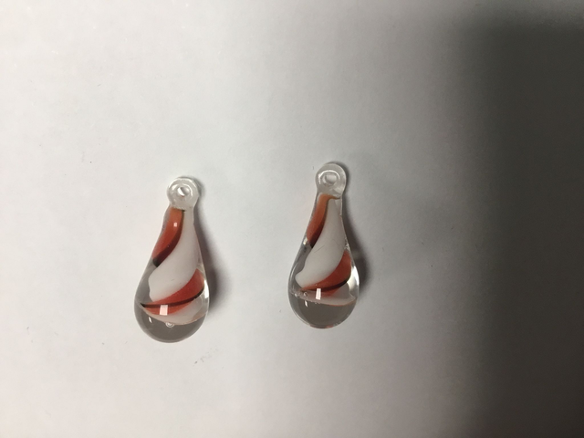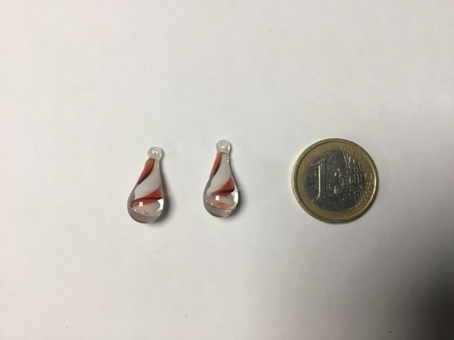 Verre borosilicate transparent , inclusion spirale rouge et blanc