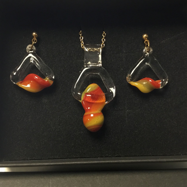 Boucles d’oreilles : Hauteur totale 27 mm (partie verre: 21 mm)