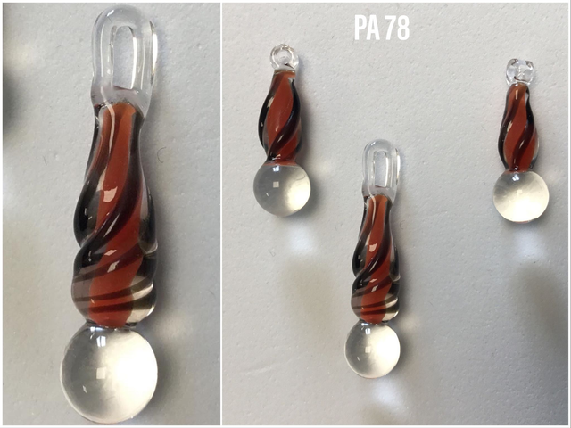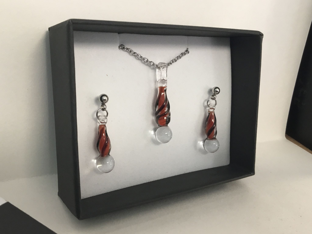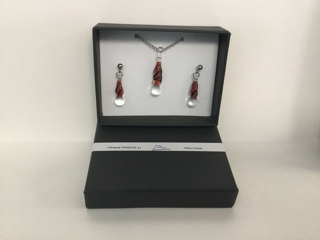 Verre borosilicate transparent, inclusion rouge et verre opaque noir.