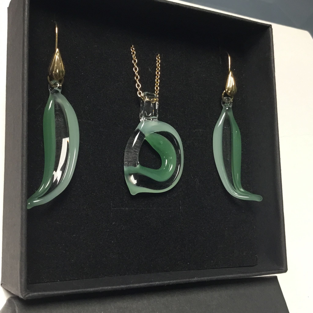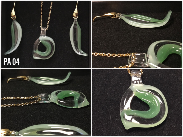 Verre borosilicate transparent, verre opaque vert deux tons.