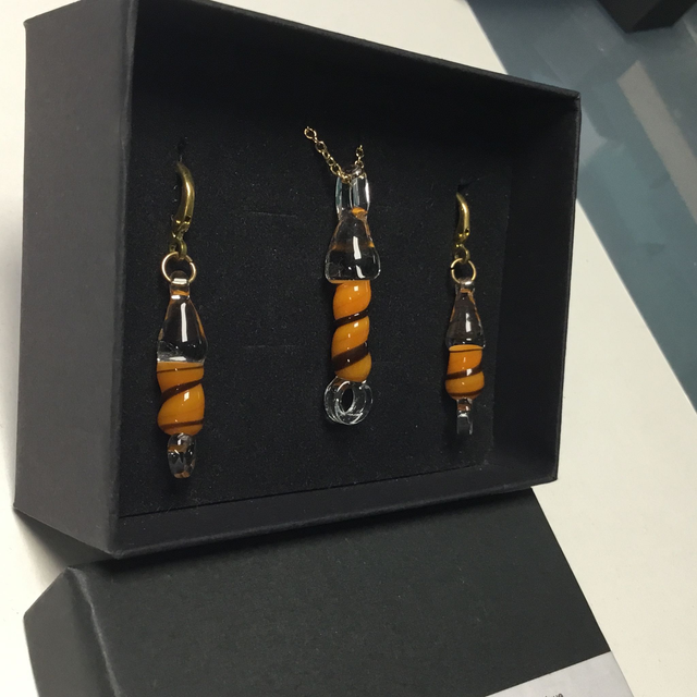 Boucles d’oreilles : Hauteur totale 44 mm (partie verre: 28 mm)