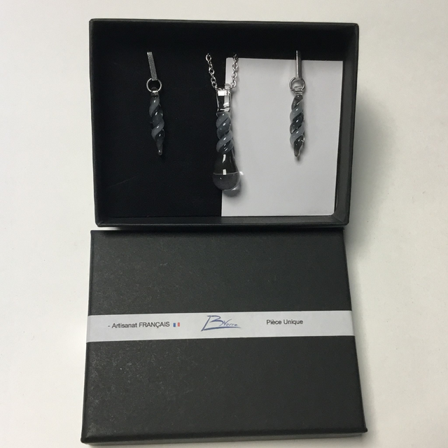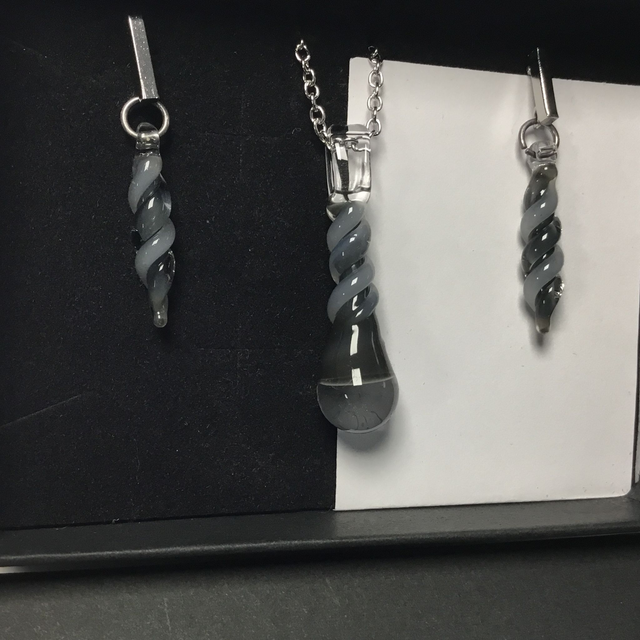 Verre borosilicate transparent, spirale verre opaque gris et blanc .