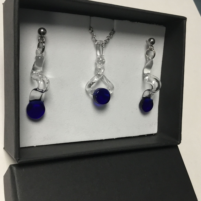 Boucles d’oreilles : Hauteur totale 40 mm (partie verre: 32 mm)