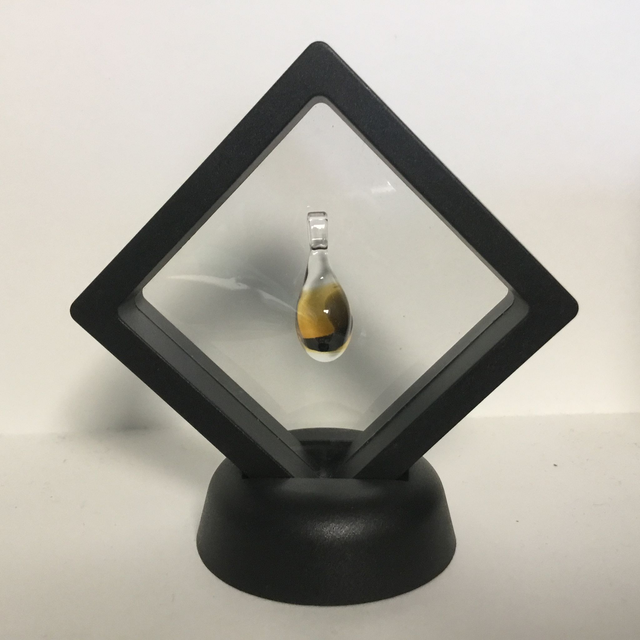 Présenté en boîte plastique avec support et pochette velours noir