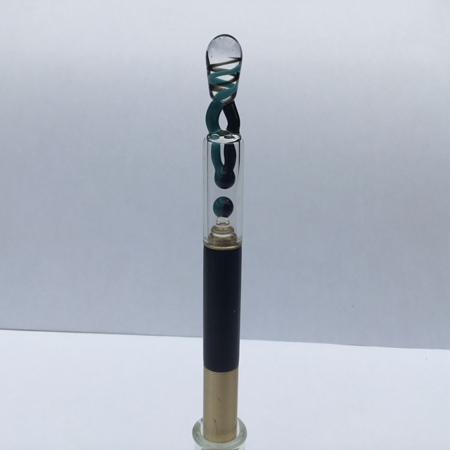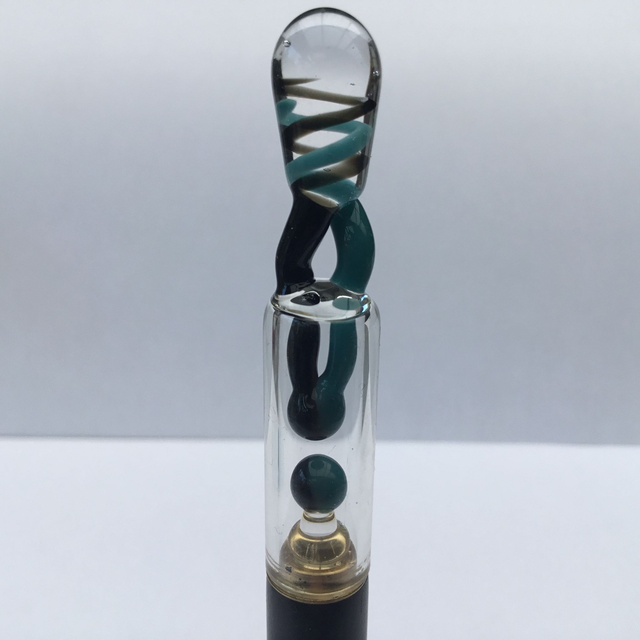 Partie haute à deux étages en verre borosilicate incolore, inclusion vert et bleu jade , blanc