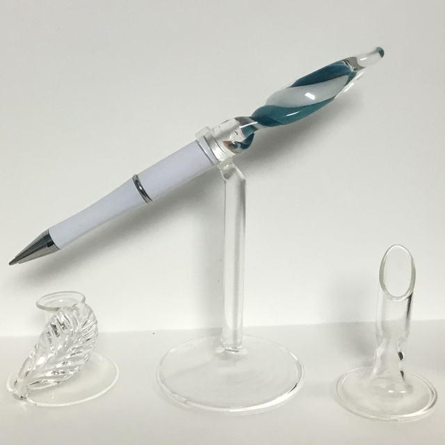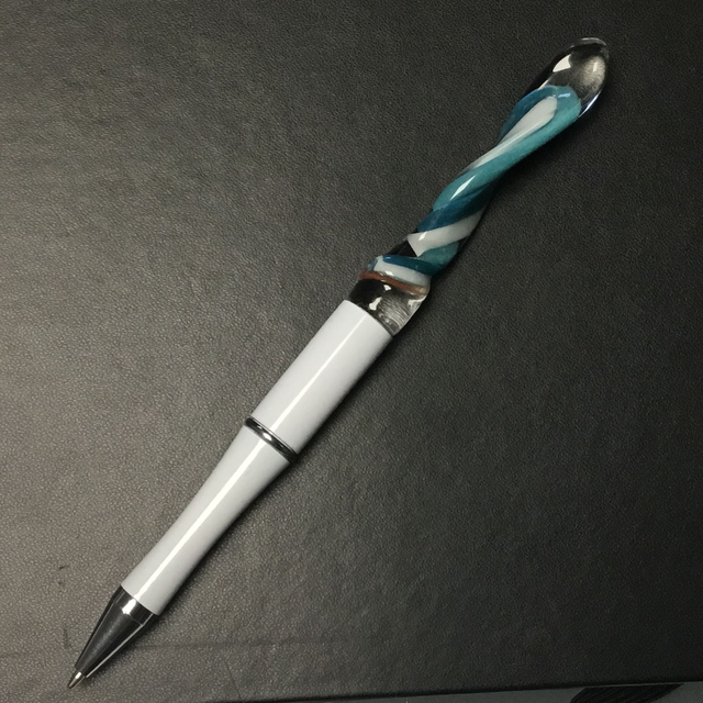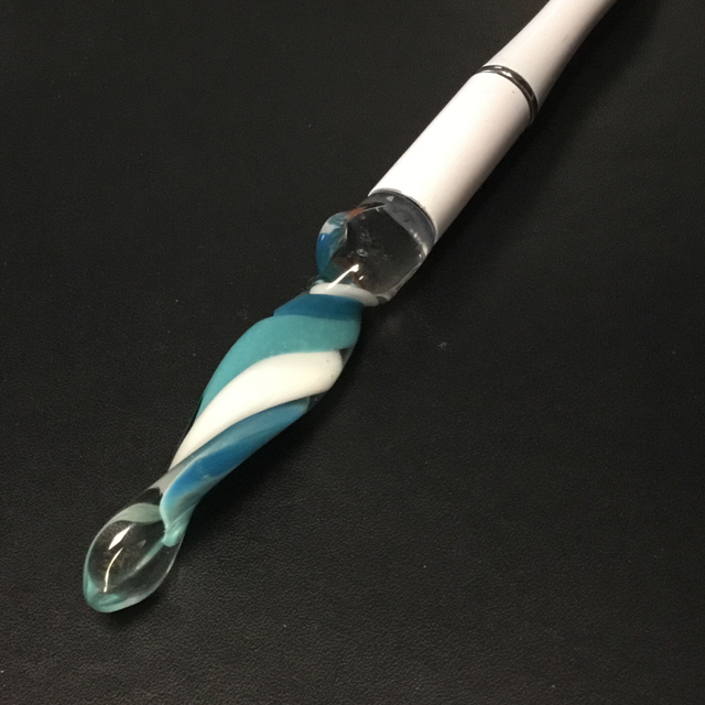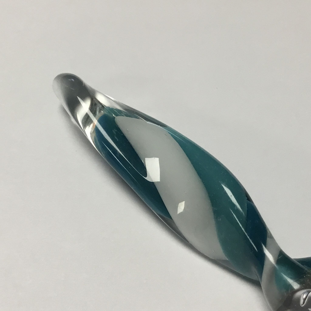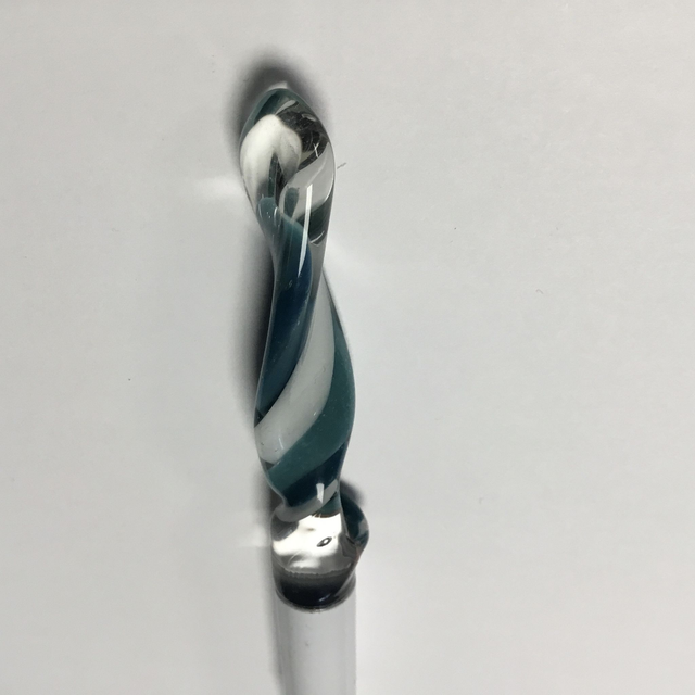 Verre borosilicate transparent et inclusion spirale opaque vert bleuté 3 tons.
