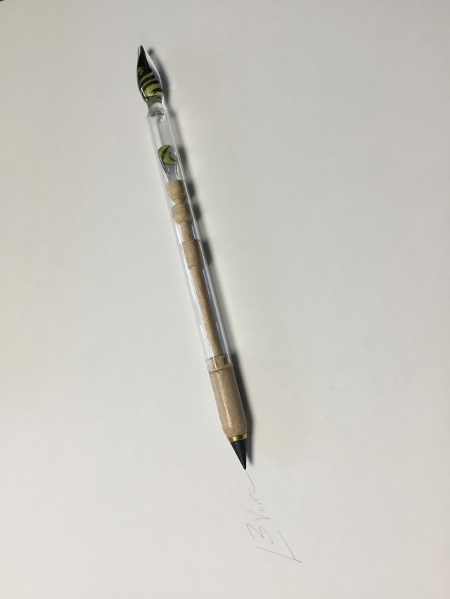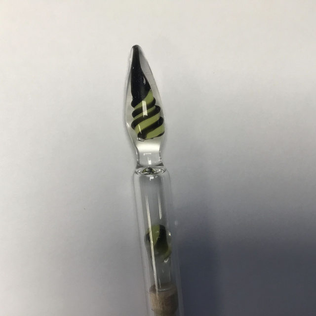 verre borosilicate transparent avec inclusions jaune spirale noire