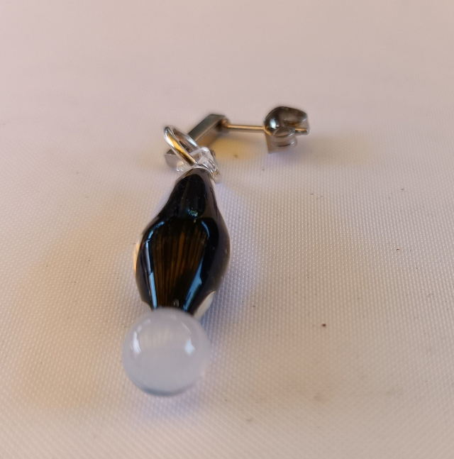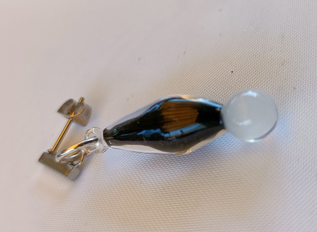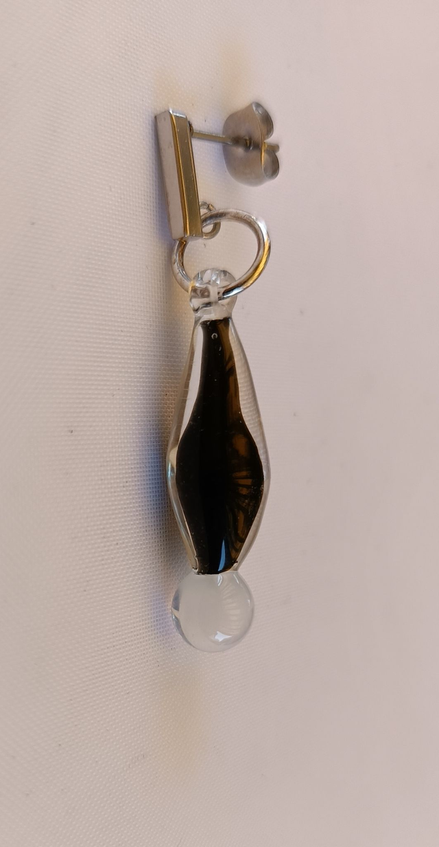 Verre borosilicate transparent, inclusion noir et sphère blanche